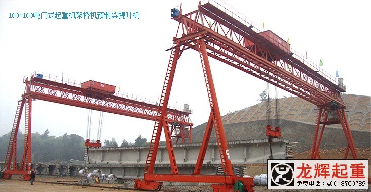 一、此形式均為通用門式起重機,型號:MG型160t及以下。 龍輝起重通用門式起重機是一種沿道軌方向作縱向運動,提升小車作橫向運動,吊鉤作升降運動的起重吊運設備。 龍輝起重本產(chǎn)品適用于工礦企業(yè)、公路、鐵路、倉庫、料場的裝卸搬運工作,龍輝起重同時也是目前預制梁場吊運預制梁最理想的必備起重機械。本產(chǎn)品適用于溫度—20℃~40℃,無火災、無爆炸危險和無腐蝕性介質(zhì)的環(huán)境中工作,本產(chǎn)品結構輕便,易于運輸。 該起重機為了運輸和現(xiàn)場拼裝方便,金屬結構件采用銷軸或者法蘭聯(lián)結,其結構由1大車行走、2支腿、3主梁座、4主梁、5提升小車、6穩(wěn)定桿、7 均衡梁、8操作室、9操作室底座等組成。 二、龍輝起重技術參數(shù) 起重量 | 主提升重量 | 20t~40t | 50t~60t | 70t~80t | 90t~100t | 120~140t | 160t | 副提升重量 | 5t | 10t | 跨度 | 10m~65m | 提升高度 | 7m~50m | 工作級別 | A3 A4 | 速度(m/min) | 主鉤提升速度 | 0.95 | 0.8 | 0.6 | 0.6 | 0.9 | 0.6 | 天車運行速度 | 4~15 | 4~15 | 4~15 | 3~10 | 3~10 | 3~10 | 整機運行速度 | 6~20 | 6~20 | 6~20 | 6~20 | 6~20 | 6~20 | 副鉤提升速度 | 8 | 8 | 8 | 7 | 7 | 7 | 副鉤運行速度 | 20 | 20 | 20 | 20 | 20 | 20 | 電動機功率(kw) | 主鉤提升 | 7.5~11 | 11~15 | 15 | 15~22 | 15~32 | 15~32 | 副鉤提升 | 7.5 | 7.5 | 7.5 | 13 | 13 | 13 | 天車運行 | 3~9 | 3~9 | 3~9 | 6~18 | 6~18 | 6~18 | 整機運行 | 6~24 | 6~24 | 8~36 | 8~36 | 8~36 | 8~36 | 副鉤運行 | 0.8 | 0.8 | 0.8 | 0.8x2 | 0.8x2 | 0.8x2 | 整機總重(t) | 13~126 | 21~156 | 25~178 | 28~210 | 32~240 | 37~258 | 整機總功率(kw) | 15.1~130 | 最大輪壓(kn) | 142~310 | 薦用鋼軌 | P38 | P43 | P50 | 電源 | 三相交流50Hz 380V 3-phase |